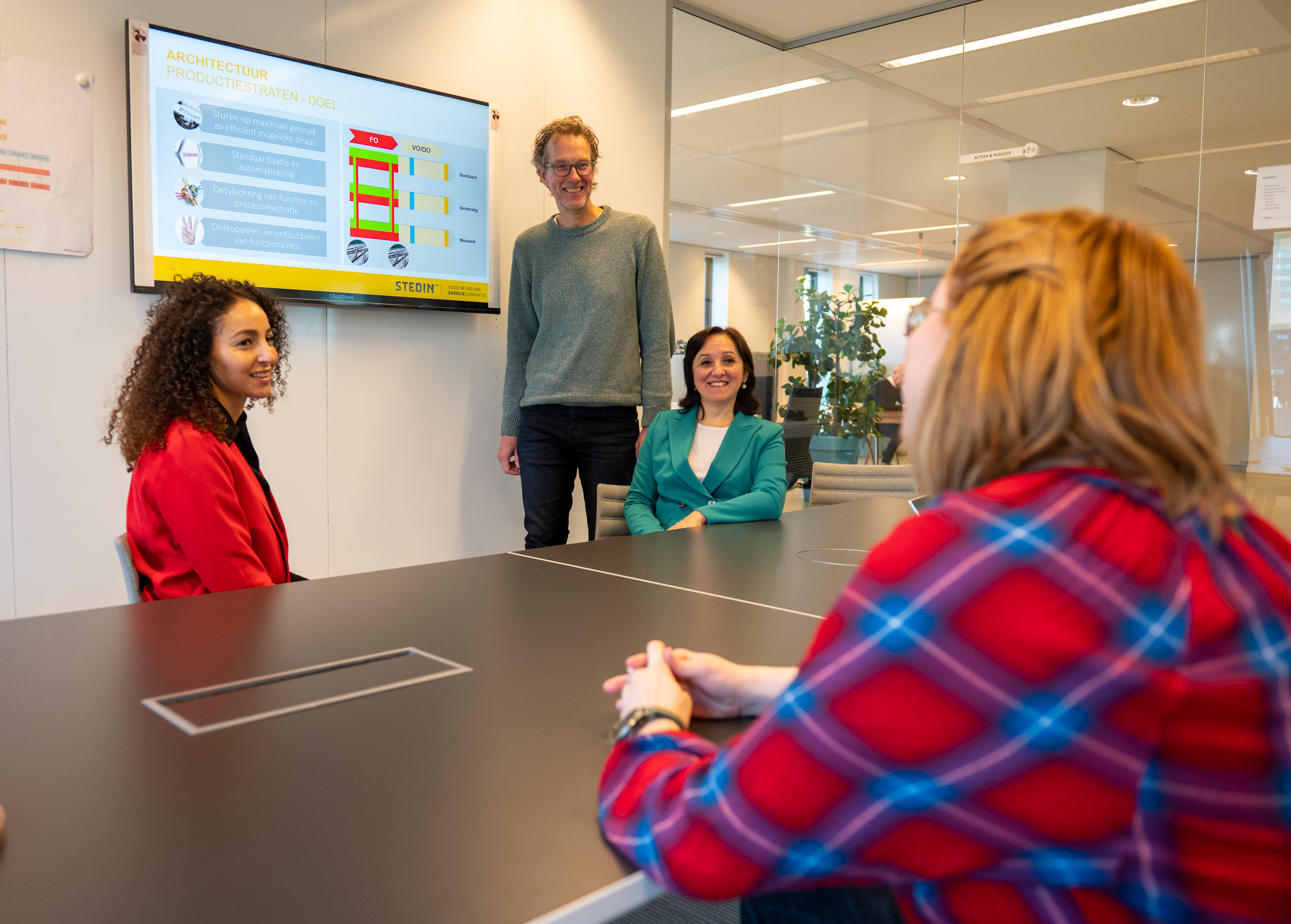 Na de lunch bespreek je met je teamgenoten en je Product Owner de refinement van nieuwe features. Zo zorg je er met je team voor dat het aankomende werk duidelijk is om op te pakken. Actiepunten neem je mee en werk je zelfstandig uit. Vervolgens overleg je over modelleringsvraagstukken met de andere Informatie Analisten zodat we binnen Stedin uniform blijven in onze datamodellering.